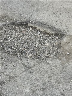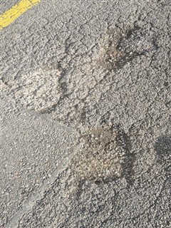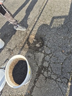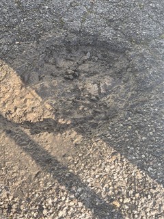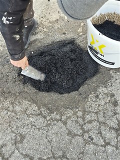 13 trous de 3 à 6cm de profond, rebouchés avec de l'enrobé à froid